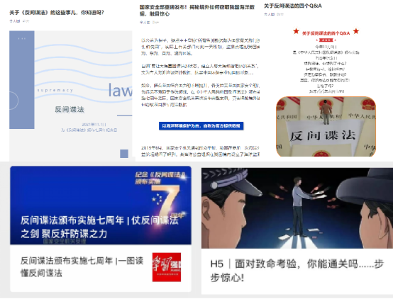 2021年11月1日是《中华人民共和国反间谍法》颁布实施7周年。近日,色色动漫 多措并举,积极组织开展“学习《反间谍法》,维护国家安全”主题教育活动,引导广大青年学子牢固树立总体国家安全观,提高国家安全意识,增强反奸防谍能力,共同维护国家安全。