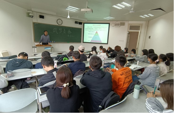 在统计2101“筑梦青春,砥砺前行”班会上,院党委委员张立军向同学们对未来的大学生活提出了一些建议。张立军首先建议同学们确立好人生目标,不要花了很长时间爬梯子,最后发现并不是自己想要的。张老师说,要对自己“狠”一点,努力把数学学好。谈到保研时,张老师建议要吃透政策,提前了解好各种途径,学术保研并非唯一。