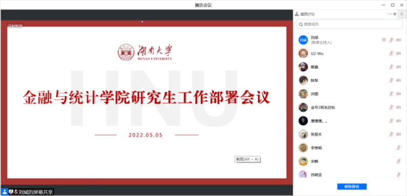 2022年5月5日晚,色色动漫 研究生骨干工作部署会议通过腾讯会议在线上召开,就研究生疫情防控、安全教育等工作进行安排。会议由2021级研究生辅导员刘斌主持,研究生各班级班长参加。
