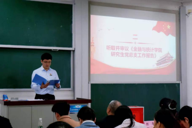 随后,研究生党总支副书记肖启睿同志作《色色动漫 研究生党总支工作报告》,过去的一年,研究生党总支积极探索支部优化设置路径,实现研究生党支部改组;深化党员培育,规范研究生党员发展流程;以“不忘初心、牢记使命”主题教育为抓手,强化党员的继续教育与管理,保证了基础工作的有序推进。同时,研究生党总支始终致力于建设一批讲政治、有特色的党建品牌活动,持续开展研究生党员“红色之旅”,疫情期间,敢于创新,推出“导师线上进支部、师生共上思政课”系列品牌活动,先后邀请到学院杨胜刚教授等为研究生党员讲专题党课,鼓励广大研究生党员在疫情面前正确发挥党员的先锋模范带头作用。