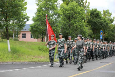8月27日早上七点半,随着教官的一声哨响,财院校区2022级的新生们正式开始了军训拉练活动。学生以两路纵队出发,排头两名男生负责举旗。鲜红的旗帜彰显着气势,新生斗志昂扬,精神饱满,怀着满腔的热情。