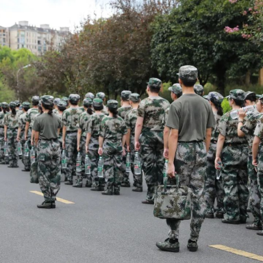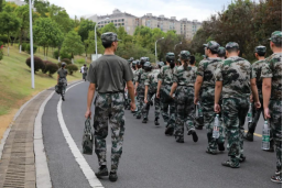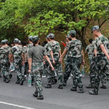拉练途中,教官组织大家唱军歌,呼喊口号,缓解了大家的疲劳。