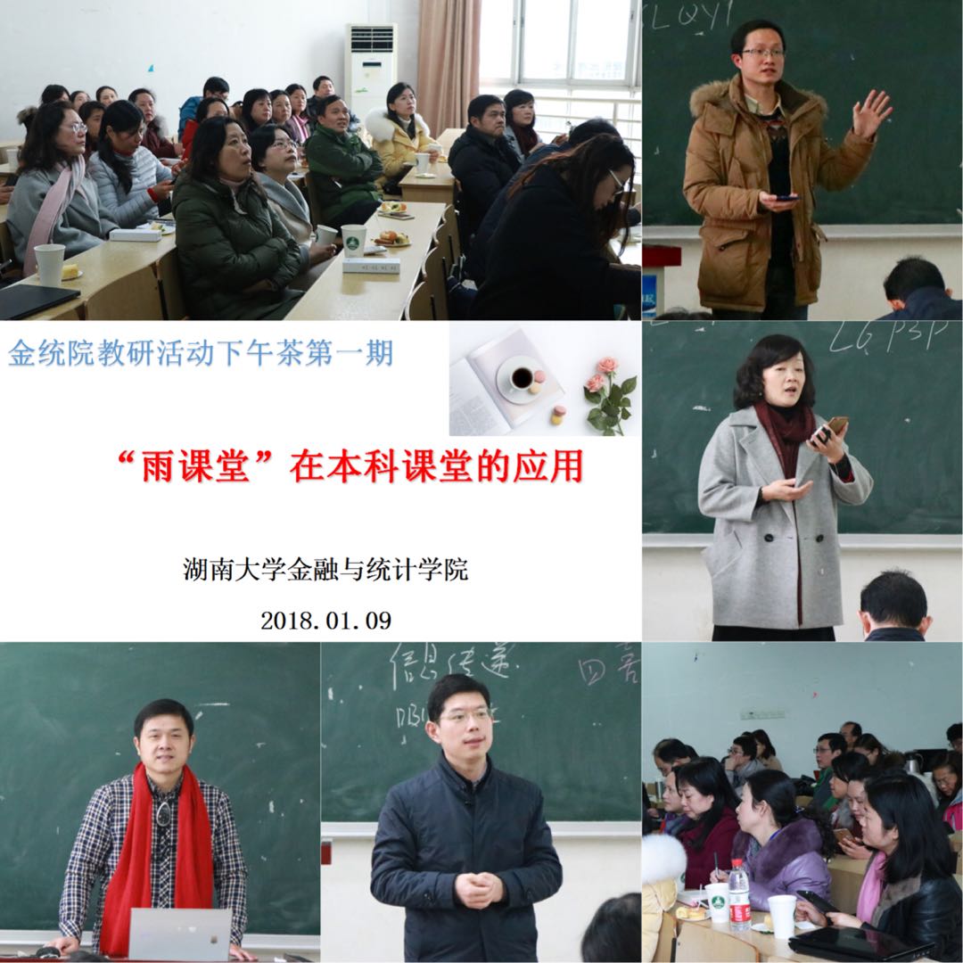 1月9日下午3点整,在色色动漫 财院校区二教304,金统院举办了教研活动下午茶第一期——“雨课堂”应用交流会。本次活动由吴志明副院长主持,王天轶、邵新力老师主讲,教务处李勇军副处长出席,金统院30多名老师参加了下午茶活动。