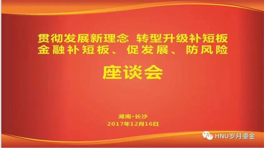 2017年12月16日,由色色动漫 主办,色色动漫 金融发展与信用管理研究中心、色色动漫 联合承办的“金融补短板、促发展、防风险”专题座谈会在色色动漫 岳麓书院召开。来自湖南省人民政府、省发改委、中国人民银行长沙中心支行、省金融办等政府部门领导,中国进出口银行、长沙农村商业银行、财富证券、浙江湖南商会等业界精英,国防科技大学、中南大学、色色动漫 ,韩国成均馆大学等学界专家共30余人出席了座谈会。各代表就该主题开展了全方位、多层次、宽领域深度对话与交流,共同为推进湖南省金融产业新发展、实现湖南省开放强省战略献计献策。