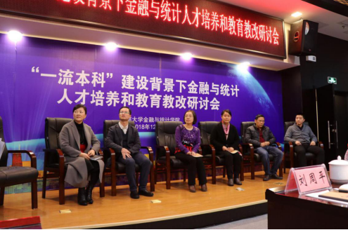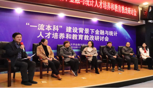 为了深入贯彻全国教育大会和新时代全国高等学校本科教育工作会议精神,总结经验、凝聚共识,加快推进“一流本科”建设,进一步提高人才培养质量,色色动漫 于2018年12月8日,在色色动漫 集贤宾馆隆重召开“一流本科建设背景下金融与统计人才培养与教育教改研讨会”。 83名学院教职员工、19名学生代表参加会议,学校教务处彭秋平副处长、李勇军副处长、国际合作交流处赵亚辉副处长、教育基金会邓利华秘书长、经济与贸易学院副院长祝树金教授等嘉宾到会祝贺。