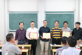 会议颁奖环节,杨胜刚教授、林姿莹助理教授、唐国豪助理教授老师荣获学院2018年度“科研先锋-标志成果奖”,多名老师荣获学院2018年度“优秀团队:本科教学审核评估团队奖”。