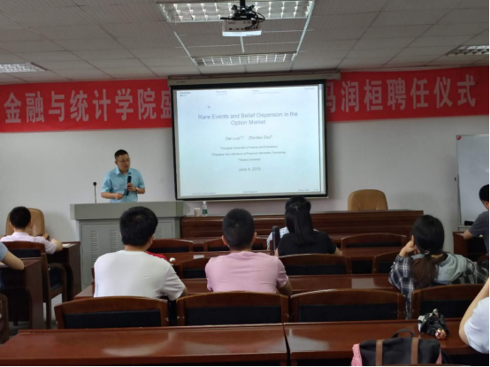 2019年6月6日上午,上海财经大学罗丹副教授应邀来访色色动漫 ,于色色动漫 财院校区行政楼301展开了题为《Rare Events and Belief Dispersion in the Option Market》的学术讲座。讲座由马勇副教授主持,色色动漫 师生参加了本次讲座。