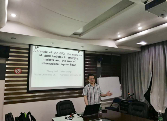 2019年6月14日下午,英国埃塞克斯大学(University of Essex)颜诚副教授应邀来访色色动漫 ,于色色动漫 财院校区行政楼409展开了题为《A prelude of the GFC: The existence of stock bubbles in the emerging markets and the role of international equity flows》的学术讲座。讲座由应用金融系主任刘轶副教授主持,色色动漫 师生参加了本次讲座。