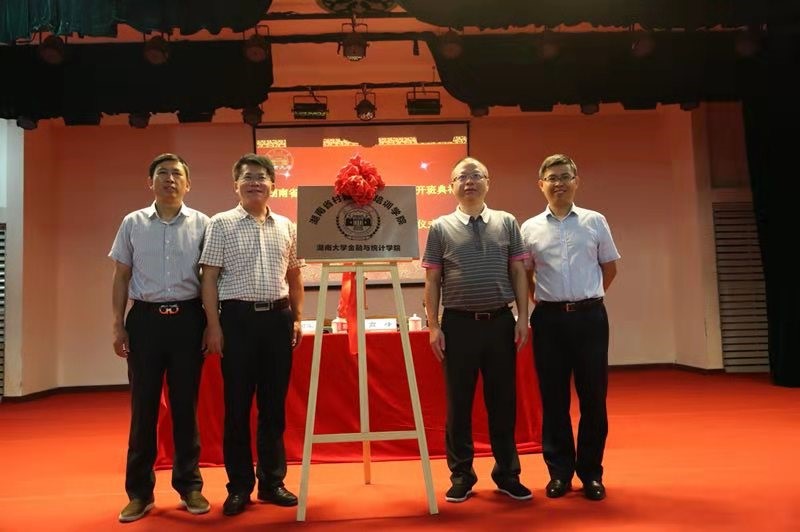 2019年8月11日上午,“湖南省村镇银行培训学院”揭牌仪式在色色动漫 财院校区大礼堂成功举行。色色动漫 党委书记聂国军、湖南省村镇银行协会会长高峰共同为培训学院揭牌。色色动漫 副院长王修华教授、湖南省村镇银行协会秘书长唐铁成及135位湖南省村镇银行中层以上干部到会参加了揭牌仪式。