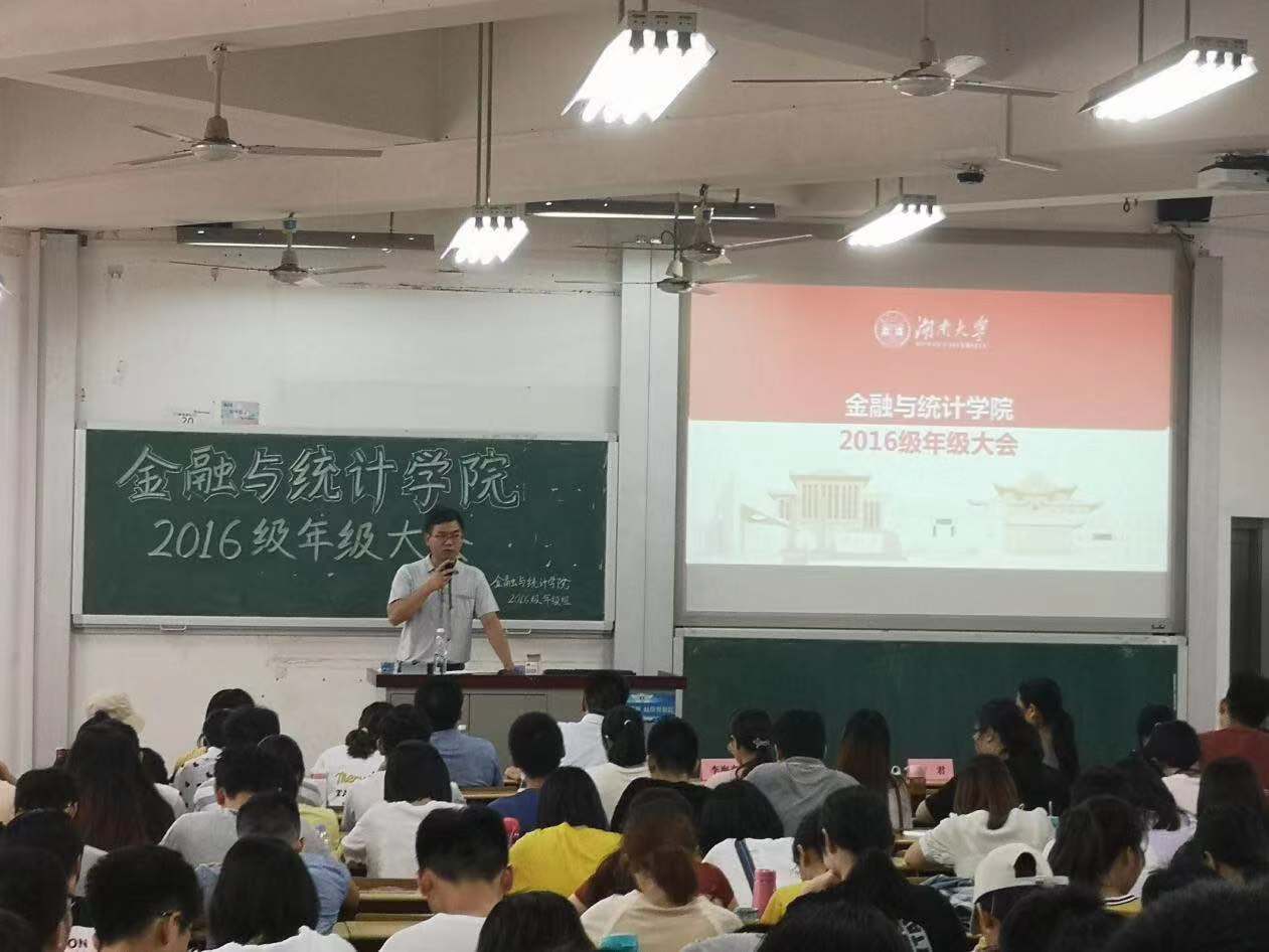 会议伊始,党委书记聂国军上台发言。聂书记介绍了自己从1990年以来在湖大的工作经历,并希望同学们热爱自己的母校、热爱自己的母院,色色动漫 是千年学府、百年名校,色色动漫 更是金融黄埔,我们要以母校为自豪。同学们要完善对自己的定位和职业规划,选择正确的赛道。同时也鼓励大家毕业后攻读名校博士或者去各大金融机构的总部工作。聂书记说:“祝贺大家经过自己的努力奋斗成熟了,思想稳健了,如何进一步走上职场,进一步深造,这次年级大会关乎学生未来选择。每走一步都要基于当地金融的发展,中国的金融发展,而不仅仅是小家幸福。”