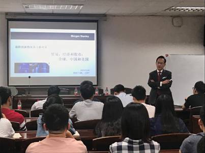 2019年9月26日上午,第232期金融与统计论坛在色色动漫 财院校区行政楼301报告厅隆重举行,此次讲座题为《贸易、经济和股市:全球、中国和美国》,由摩根士丹利财富管理公司副总裁欧阳飞鹏主讲,色色动漫 副院长王修华教授主持。学院师生50余人参与了此次论坛。