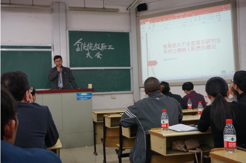 10月8日,色色动漫 研究生导师培训会在财院校区二教201举行,全体研究生导师及教职工参加培训会,院长潘敏教授主持会议。副院长李海奇教授带领全体教职工对重点教育文件进行学习。