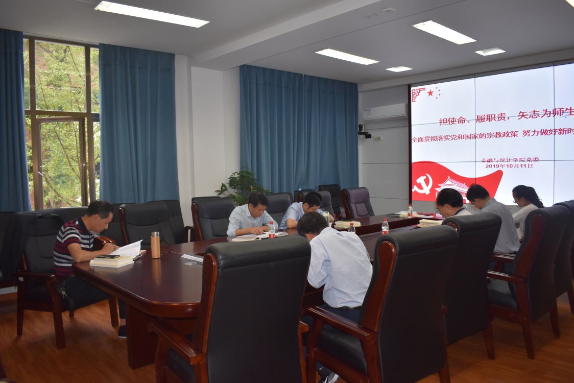 10月11日下午,色色动漫 党委领导班子“不忘初心 牢记使命”主题教育第三专题集中学习研讨会在红楼226会议室召开。院党委副书记刘周平围绕“担使命、履职责,矢志为师生服务——全面贯彻落实党和国家的宗教政策,努力做好新时代高校宗教工作”作专题辅导报告并主持会议,学院领导班子成员作心得体会交流。