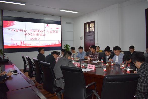 2019年10月18日上午,色色动漫 在财院校区红楼326会议室召开了“不忘初心,牢记使命”主题教育研究生座谈会。学院党委书记聂国军,院长潘敏,副院长李海奇,研究生管理办罗俊杰主任与各级硕士、博士研究生学生代表共聚一堂,共同探讨有关学院发展的关键性问题。