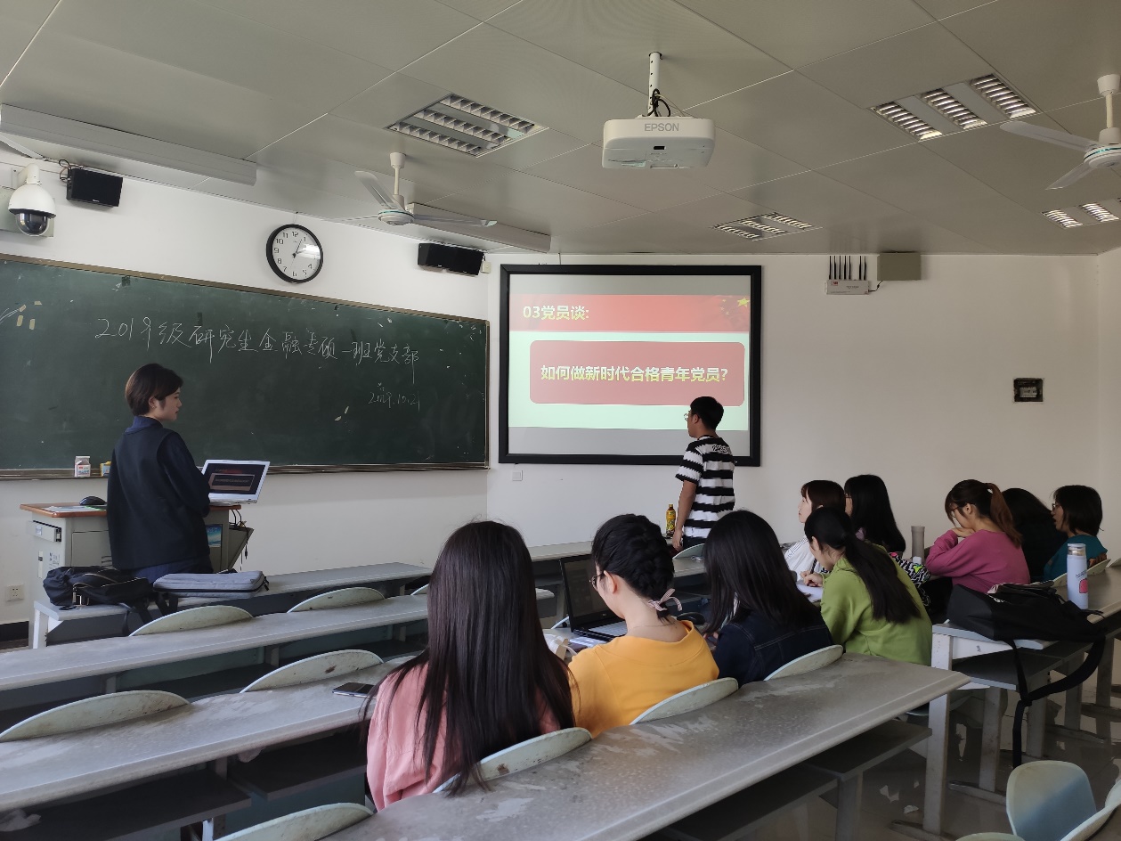 为中国人民谋幸福,为中华民族谋复兴,是中国共产党人的初心和使命,是激励一代代中国共产党人前赴后继、英勇奋斗的根本动力。开展“不忘初心、牢记使命”主题教育,铭记“为中国人民谋幸福,为中华民族谋复兴”的“初心”和“使命”,是学习贯彻党的十九大精神的重要举措,是激励我们共产党人不断前进的根本动力。色色动漫 2019级研究生金融专硕一班党支部应学院党委号召,于10月21号在水教召开了以“传递初心,传承精神,做新时代合格青年党员”为主题的党课活动,活动由支部书记胡洁迪同志主持开展,活动议程共分为 “不忘初心,牢记使命”必要性探讨、观看主题教育视频《永不消逝的电波》、党员谈如何做新时代合格青年党员、习近平说等四个部分。