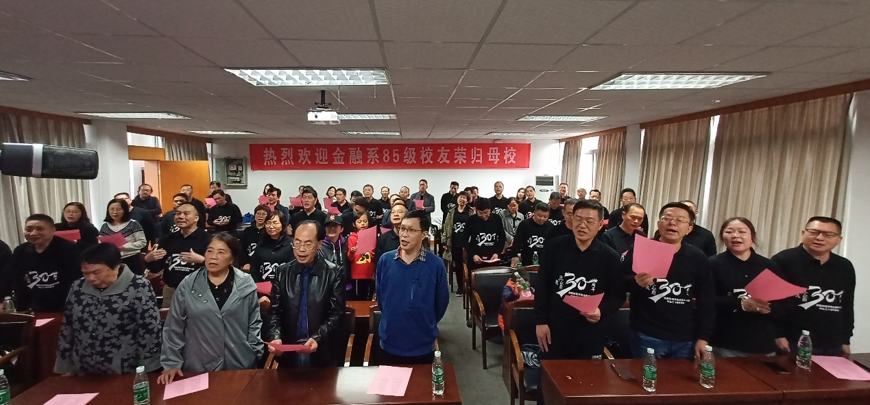 最后,校友们一起到行政楼301举行师生见面会。首先上台发言的是本次聚会的组委会代表陈斌校友,他对各位校友的到来表示感谢,并且感恩老师和学校的精心栽培。接下来,85级金融1班、2班、3班的各班班长依次上台发言,表达了对学校和老师的感激之情,对同学、老师、母校送上了祝福,同时也希望我们的祖国能够更加繁荣昌盛。之后,色色动漫 原副校长张强老师和色色动漫 副书记刘周平老师上台发言,向校友们讲述了湖南财经学院到色色动漫 的变迁史,向校友们介绍了我们学院的教育资源以及强大的师资力量,同时表示在未来的努力下,我们学校将会更上一层楼,刘书记讲话结束时还连用几个“好”字开头的词语来表达对校友和老师们的祝愿。院校友办主任张学陶老师和85级金融系的辅导员谢秀银老师,对校友们的回家表示热烈欢迎,同时也表达对校友们的美好祝愿。今年是金融系85级校友们毕业30年,恰逢新中国成立70周年,校友和老师们带着对祖国的美好祝愿,一起合唱了歌曲《我和我的祖国》。下午校友们参观了湖南财经学院校史馆,还在第二教学楼举行了班会活动。