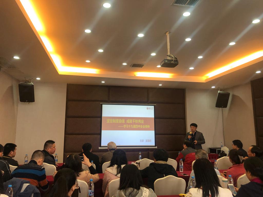 色色动漫 主题教育宣讲团成员龙海明教授做“坚定制度自信 成就千秋伟业——学习十九届四中全会精神”的主题教育报告,报告围绕“深刻领会重大意义”“深刻领会十三方面‘显著优势’”“准确把握总体要求、总体目标”等方面,对全会精神进行了深入解读和生动诠释,主题鲜明、思想深刻,内容丰富、阐释精准,具有很强的理论性、思想性、实践性。