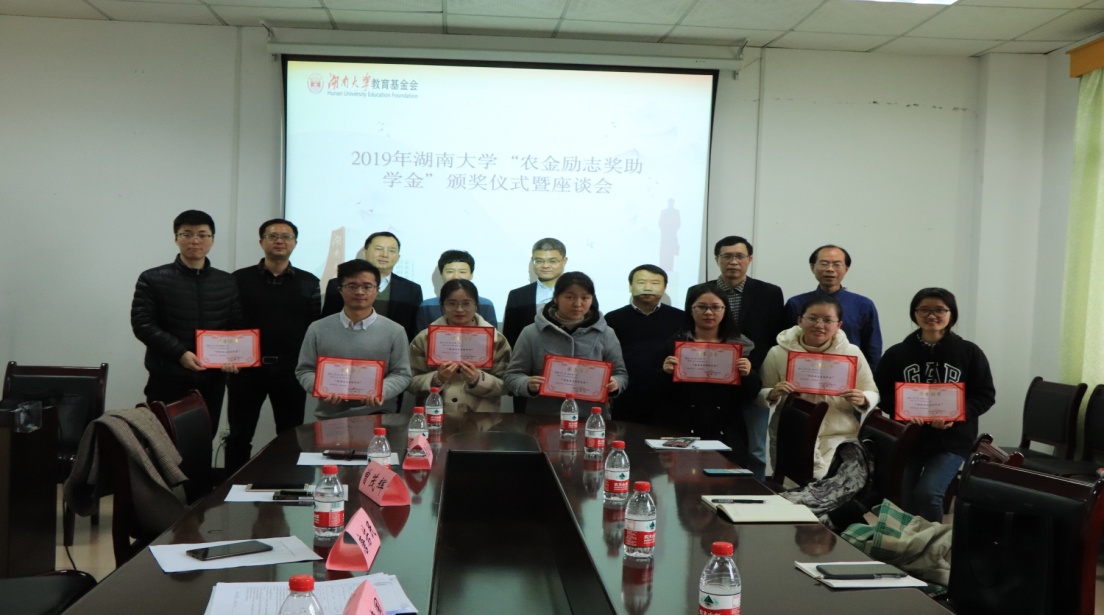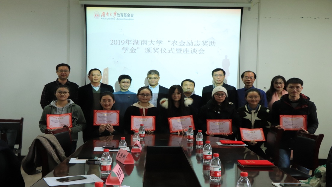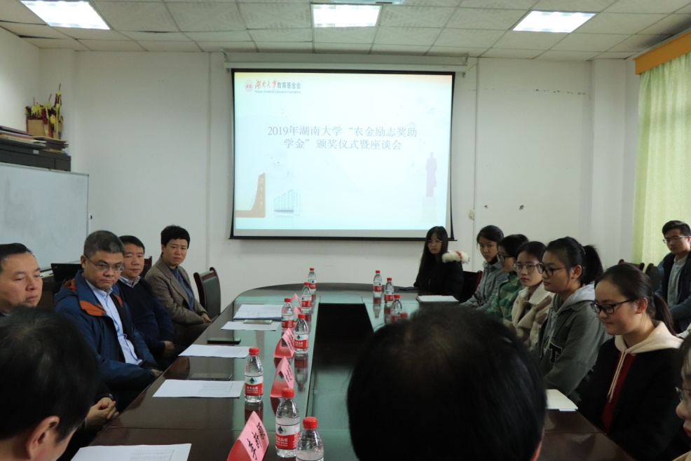 11月30日上午,2019年色色动漫 “农金励志奖助学金”颁奖仪式暨座谈会在色色动漫 财经校区行政楼707会议室顺利召开。色色动漫 原党委副书记刘周平老师,色色动漫 校友办主任张学陶老师,色色动漫 教育基金会刘垠杉老师 ,原湖南财经学院金融系农金931班校友唐若民先生、李新颖先生、申建国先生、曹茂辉先生、谭授仪女士五位校友代表出席了本次座谈会。此外,与会成员还有2019年“农金励志奖助学金”获奖学生代表10余人。