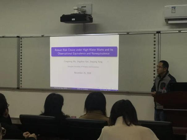 2019年11月26号上午,金融与统计论坛第241期题为《Robust Risk Choice under High-Water Marks and Its Observational Equivalence and Nonequivalence》的学术讲座在色色动漫 财院校区红楼3号210会议室成功举办。本次论坛由上海国际金融与经济研究院研究员、上海财经大学经济学院博士后母从明主讲,由色色动漫 副院长李海奇教授主持。