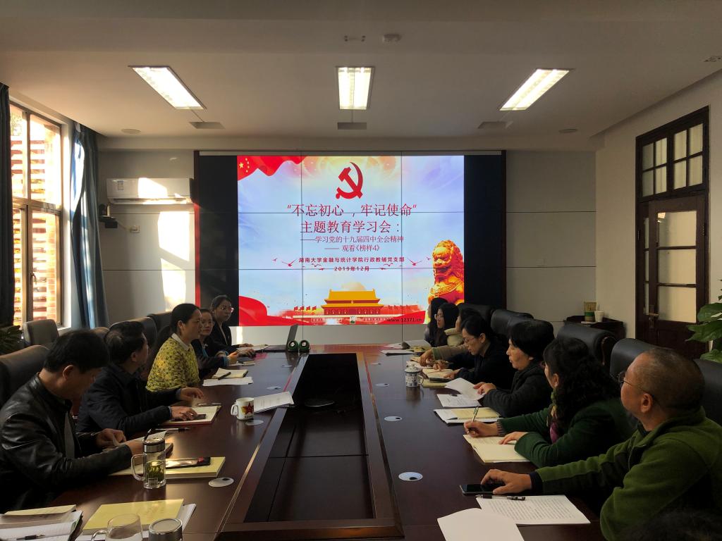 12月6日,色色动漫 行政教辅党支部第七次“不忘初心,牢记使命”主题教育学习会在红楼226会议室召开。会议主要内容为:集中传达学习党的十九届四中全会精神和观看《榜样4》专题节目。学院党委书记聂国军、行政教辅党支部书记谢君及全体党支部成员参会。