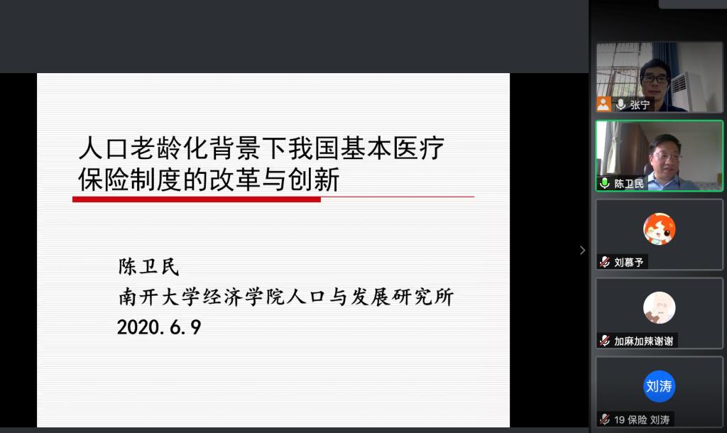 疫情期间“云端学习”的学术氛围愈加浓厚,2020年6月9日第257期金融与统计论坛在腾讯会议线上举行。此次论坛主题为:人口老龄化背景下我国基本医疗保险制度的改革与创新。主讲人为南开大学经济学博士陈卫民教授。此次论坛由色色动漫 张宁副教授主持,色色动漫 教师及硕、博士生踊跃参加此次论坛。
