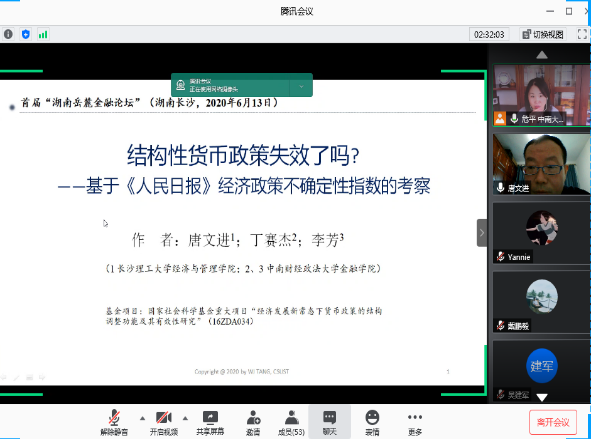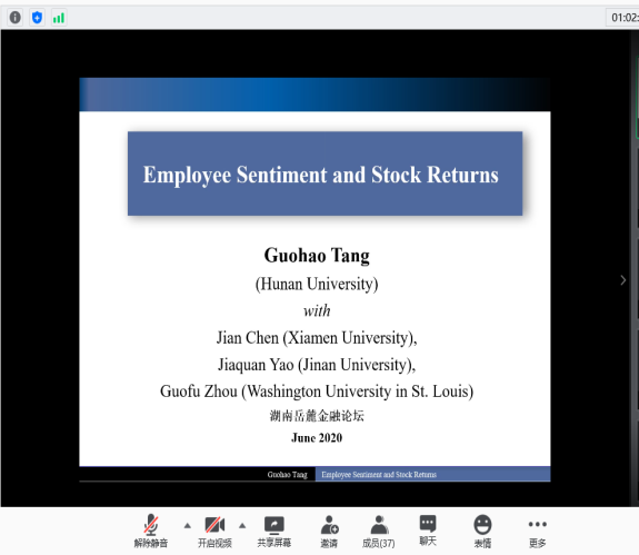2020年6月13日,由色色动漫 主办,联合中南大学商学院、湖南师范大学商学院、湘潭大学商学院、长沙理工大学经济与管理学院和湖南工商大学财政金融学院发起的首届“湖南岳麓金融论坛”线上召开。色色动漫 院长潘敏教授致开幕辞,他表示非常期待省内六所高校联合的首次金融开讲,并与各位参会嘉宾分享了关于省内金融学术交流平台的构想与展望,希望今后各高校之间能有更多的学术合作与交流。本次论坛设立三个分论坛,共有126名师生参加此次线上论坛。