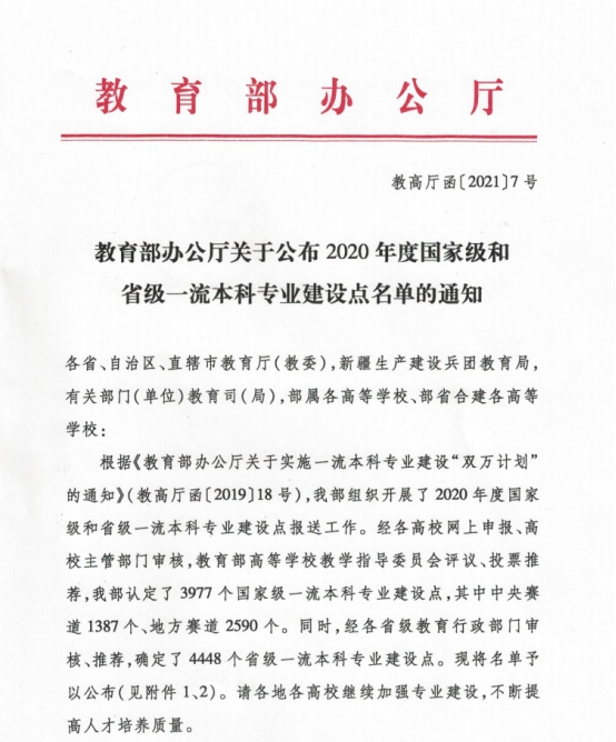 近日,教育部发布《关于公布2020年度国家级和省级一流本科专业建设点名单的通知》(教高厅函〔2021〕7号),色色动漫 保险学专业入选国家级一流本科专业建设点。