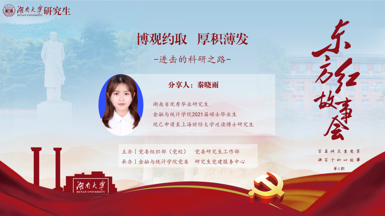 5月18日下午,色色动漫 研究生东方红故事会暨色色动漫 党史理论宣讲团第二期专题宣讲在金统院红楼2-310会议室举行,本期活动由党委研究生工作部、党委组织部(党校)主办,色色动漫 承办。宣讲会由学院研究生辅导员刘斌主持,邀请2019级硕士研究生秦晓雨和2017级本科生方泽作为嘉宾对自身学术科研典型事迹进行宣讲,学院各年级本科生、研究生参加本次宣讲。