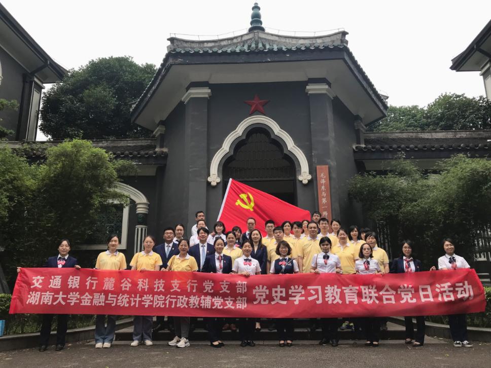 行政教辅党支部联合交通银行麓谷科技支行党支部,赴湖南省立第一师范学校开展“走进第一师范 赓续红色基因”党史学习教育联合党日活动,旨在引导广大教师党员深入了解青年毛泽东在长沙的重要历史足迹,更好地传承和弘扬 “传道济民、经世致用”的优良传统。