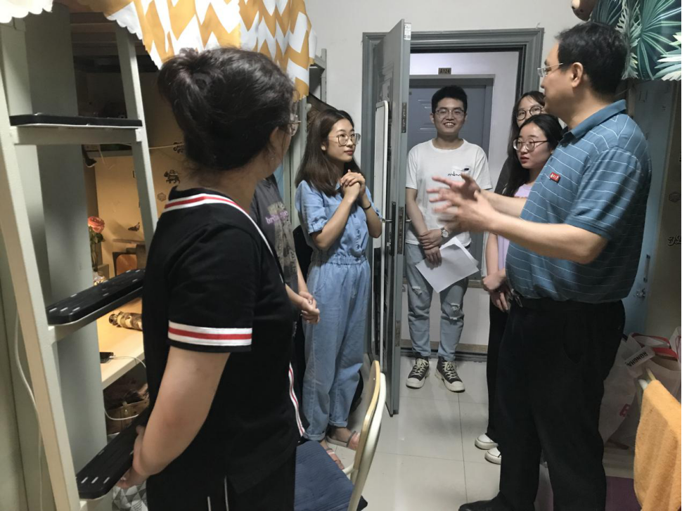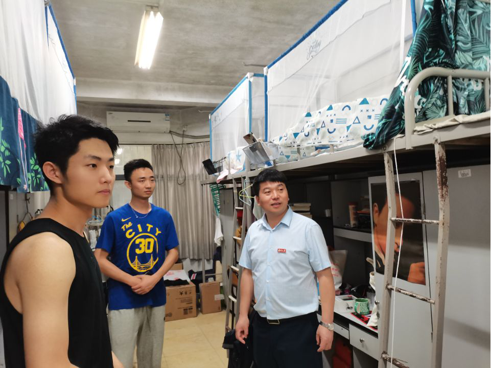 6月17日,在2021届毕业生离校之际,色色动漫 领导班子成员深入毕业生宿舍进行走访慰问,看望、欢送毕业生。