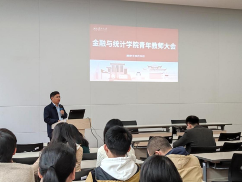 2021年10月19日,色色动漫 青年教师大会暨2022年国家基金申报动员会在财院校区老食堂二楼报告厅举行。会议由王修华副院长主持,院长潘敏、党委书记黄红立及全体45岁以下青年教师及辅导员等参加会议。