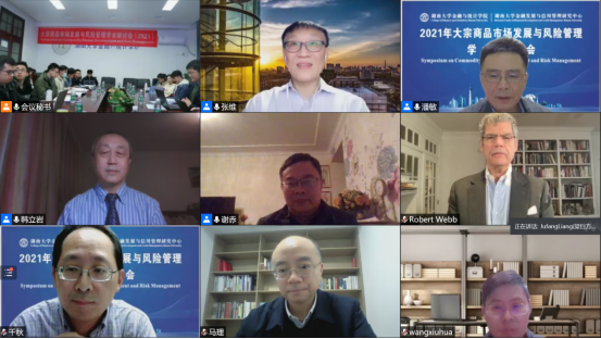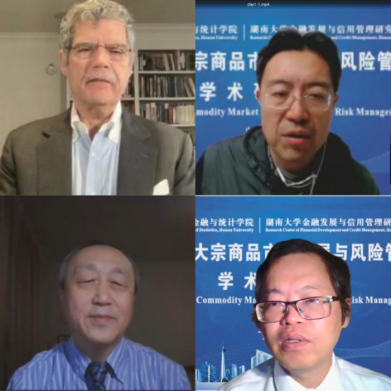 随后,五位学者以“后疫情时代的大宗商品”为主题开展了圆桌讨论。讨论由北京航空航天大学韩立岩教授主持,来自Texas A&M University的陈勇教授、University of Hawaii的刘千秋教授、Griffith University的樊华教授和色色动漫 的马理教授等参与了讨论。本次讨论首先从通货膨胀和货币政策的角度探讨了外部冲击对大宗商品市场的影响。之后各位专家将视角由宏观转向微观,探讨了大宗商品价格上涨对小微企业的影响。最后,基于以上讨论,与会专家进一步探讨了大宗商品市场的发展趋势,提出了仍待解决的问题,并针对上述问题提供了针对性的政策建议。