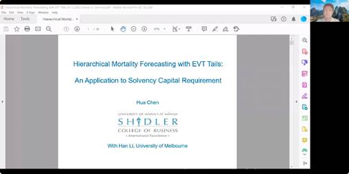 5月12日上午,由色色动漫 主办的第343期金融与统计论坛在线上腾讯会议顺利举办。本次讲座由色色动漫 副院长张宁教授主持,邀请来自美国夏威夷大学马诺阿分校的陈铧教授做题为《死亡率预测与准备金充足率研究》的学术讲座。保险精算系毕达宁老师、何玲瑀老师等50余名师生积极参加了此次讲座。
