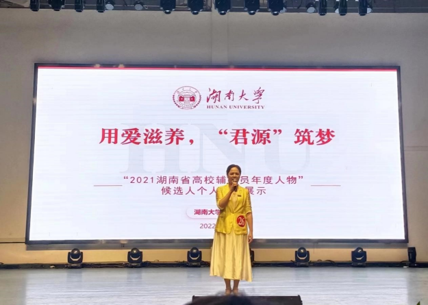 2021湖南省高校辅导员年度人物评选经过前期学院申报、学工部遴选推荐,由省委教育工委、省教育厅组织专家进行评选,共评选出30名辅导员入围现场答辩环节。色色动漫 辅导员谢君以《用爱滋养"君源"筑梦》为题,生动展示了色色动漫 思想政治工作以学生为本,关爱学生,促进学生全面发展的特点。谢君理论功底扎实、业务能力过硬,资助育人成效突出,获得现场评委的一致肯定。