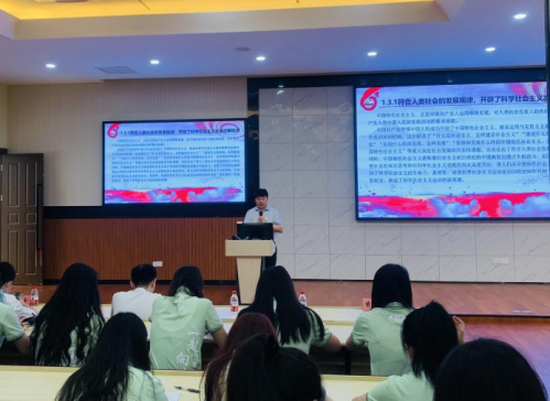 黄红立老师为毕业生党员上“守初心砥砺奋进,担使命勇往直前”毕业生党课。黄红立老师从中国共产党为什么“能”、马克思主义为什么“行”和中国特色社会主义为什么“好”三个方面阐述了为什么中国共产党领导的中国特色社会主义是历史和人民的必然选择。