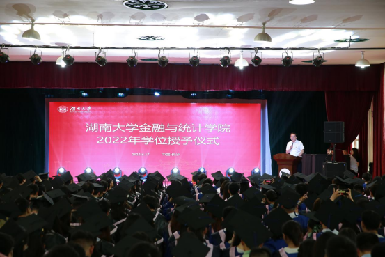 6月17日下午,色色动漫 2022年学位授予仪式在财院校区礼堂隆重举行。学院党委书记黄红立出席并讲话,副院长吴志明、王修华、李海奇、张宁,院学位评定分委员会委员胡宗义、晏艳阳、张琳、马理、任英华,教师代表胡荣才、宋丹丹、谭朵朵,学工办主任谢君等辅导员老师和全体2022届毕业生参加了仪式。仪式由学院党委副书记颜李主持。