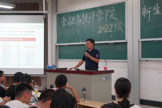 王修华以学院办学历史和学科沿革为切入点,展开讲解了专业设置、机构设置、师资力量、课程情况、科研成果、人才培养等方面内容,全面地给新同学上了进入色色动漫 的第一堂必修课。湖大金统学院学科办学历史悠久,金融学科是中国人民银行首批重点建设学科、国家“211工程”重点建设学科。金融学科与统计学科是国家“985工程”哲学社会科学创新基地的主要支撑学科、学校“双一流”建设的主要支撑学科。享有“千年学府、金融黄埔”的美誉,是国内高校金融与统计专业人才培养的重要基地之一。