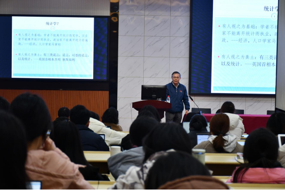 讲座结束后,朱力行教授与现场师生进行了热烈的互动交流,帮助学院师生们对统计学有了更深刻的认识,更清晰的了解和更明确的目标。