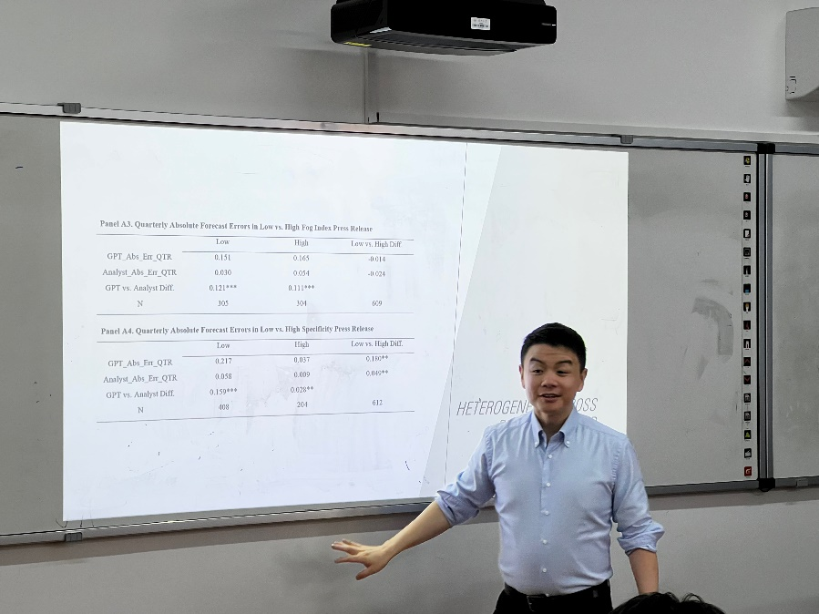 本次讲座聚焦于人工智能生成模型的前景与潜在风险,周德馨副教授着重探讨了ChatGPT模型在金融分析中的应用,以及使用该模型作为卖方分析师所面临的潜在风险。作为一种基于人工智能技术的生成模型,ChatGPT拥有自动回答问题和生成文本的能力。作为卖方分析师,它可以根据盈利新闻稿预测公司下一个季度/年度盈利数值。然而,这种模型同时也面临着误导和风险的挑战,因此需要审慎对待。