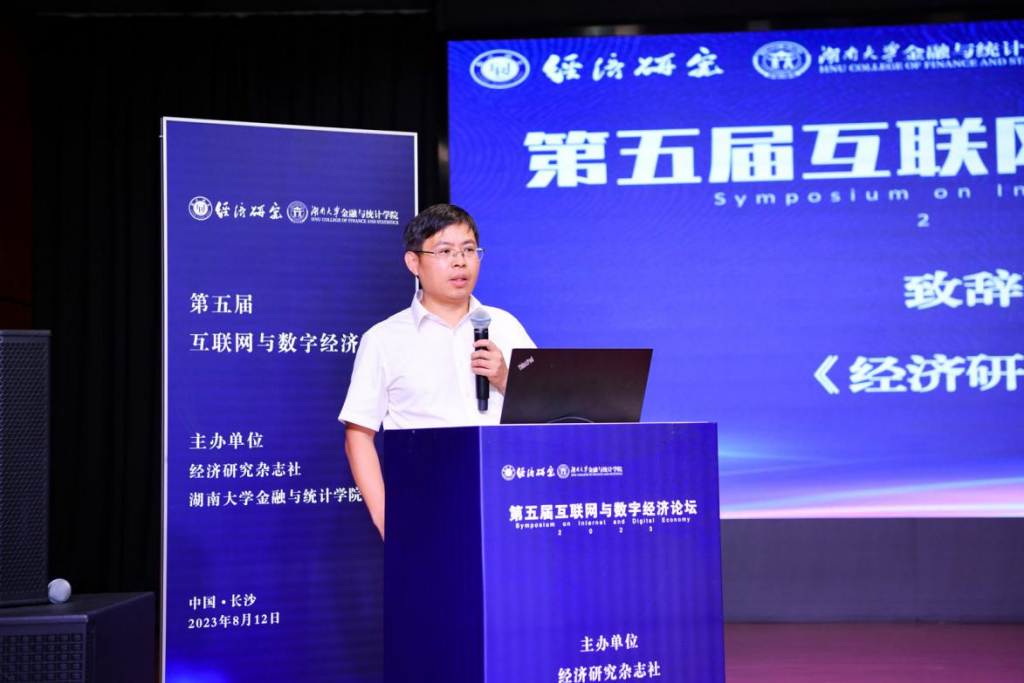 论坛开幕式由色色动漫 院长王修华主持,色色动漫 副校长谢赤和《经济研究》编辑部副主任倪红福分别代表主办单位致辞。色色动漫 副校长谢赤教授向莅临现场的各位专家学者表达了诚挚欢迎,他表示互联网与数字经济新业态的发展,为中国经济社会高质量发展带来了新机遇和新变化,各地在互联网与数字经济与传统产业融合方面进行了诸多探索,新模式新业态不断涌现。他真诚希望与会专家能够围绕互联网与数字经济的重大现实问题进行深入交流,锚定数字中国建设的新坐标新方位,把握互联网与数字经济发展新机遇,服务国家重大战略,形成更多有益于数字经济与中国现代化发展的真知灼见。《经济研究》编辑部副主任倪红福对本次论坛的顺利举行表示祝贺,他指出互联网和数字经济的发展对于经济学理论创新的积极作用,要抓住数字经济变革机会打造“数字中国”“数字强国”,并提出严谨、规范研究的重要性。《经济研究》长期关注国家的重大战略需求,希望本届论坛能够为我国互联网与数字经济发展带来新思考和新力量。