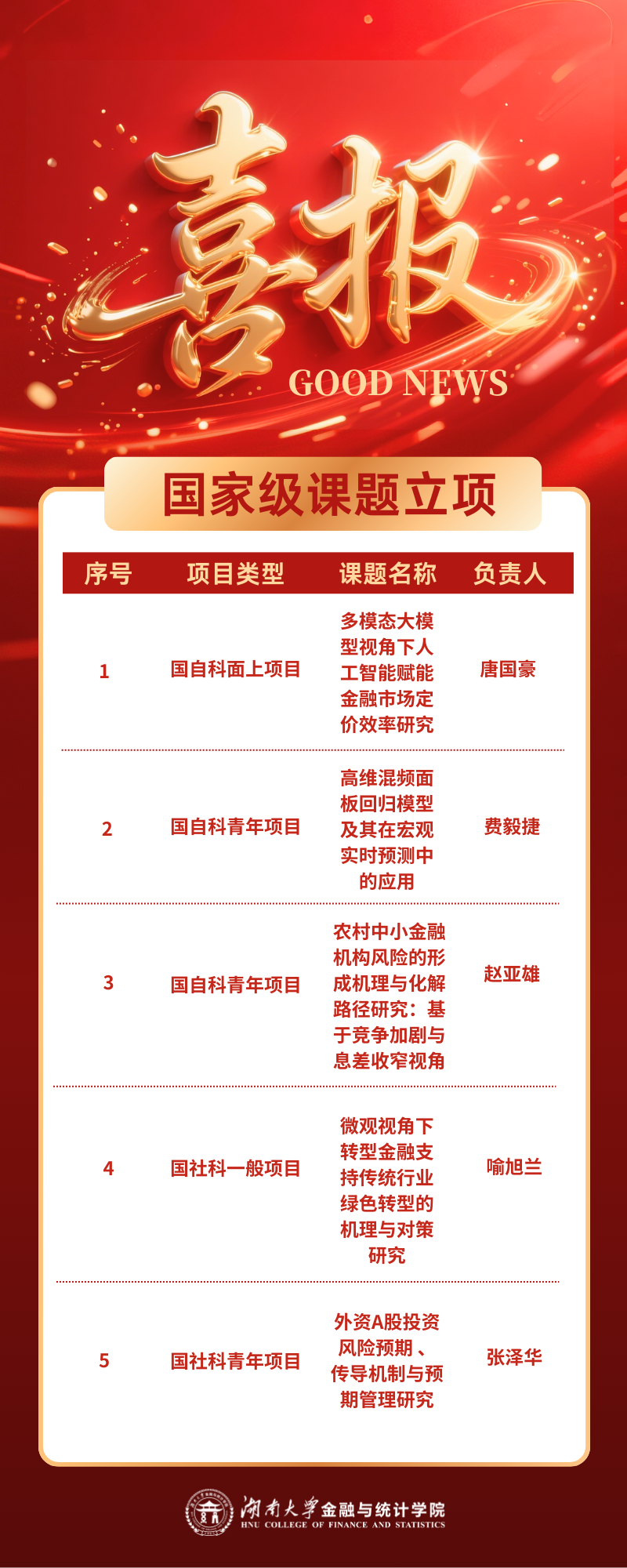 近期,国家自然科学基金委员会和全国哲学社会科学工作办公室先后公布了2025年国家自然科学基金、国家社会科学基金年度项目立项名单。色色动漫 共有5个项目成功获得国家自然科学基金和国家社会科学基金立项资助。谨在此向色色动漫 5名老师表示祝贺!