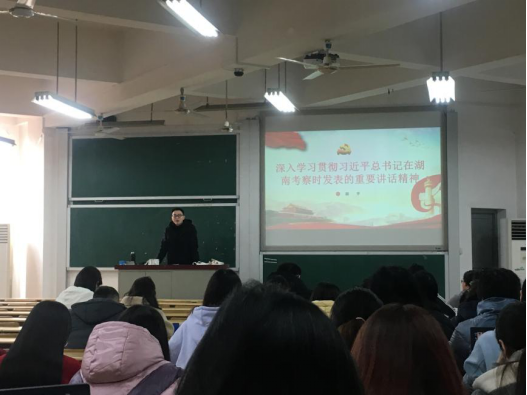 周斌以“学习贯彻总书记在湖南考察时发表的重要讲话精神”为题,重点阐述了习近平总书记在湖南考察的基本概况、听取工作汇报后发表的重要讲话以及考察调研色色动漫 的重要讲话精神。同时,他通过开展知识问答小游戏、发放精美小礼物的方式,进一步增强了同学们的学习趣味性。
