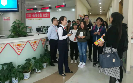 2018年10月19日下午,由学院统一安排,在保险与风险管理系副主任刘革副教授和教务办戴老师的带领下,色色动漫 保险专业16级的全体同学冒着蒙蒙细雨,来到中国平安财产保险股份有限公司湖南分公司进行认知实习,实地参观保险公司门店及分公司总部,学习保险专业实务知识。