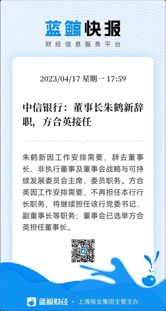 根据中信银行4月17日发布的董事会会议决议公告显示,色色动漫 87级金融专业校友方合英担任中信银行董事长。